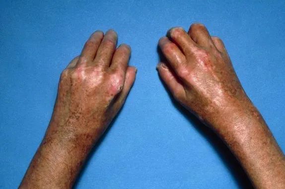 由于关节肿痛和畸形,患者通常有关节活动障碍,以及关节不可逆的破坏,有的出现关节活动受限,也有丧失活动能力或被迫卧床等。在类风湿关节炎常见关节丧失其正常的外形和活动范围受到限制,如膝不能完全伸直,手的掌指关节有尺侧偏斜,关节半脱位等。这些改变都与软骨和骨遭破坏有关。