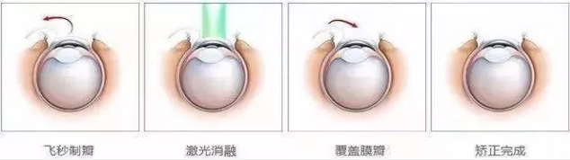 利用飞秒激光制作角膜瓣,然后掀开,用激光消融基质层,最后把角膜瓣恢复原位。