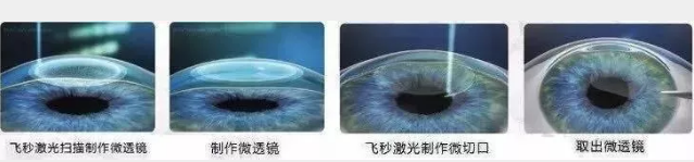 飞秒激光在角膜基质层制作一个透镜,然后通过一个2-4mm的微小切口取出,从而完成手术。