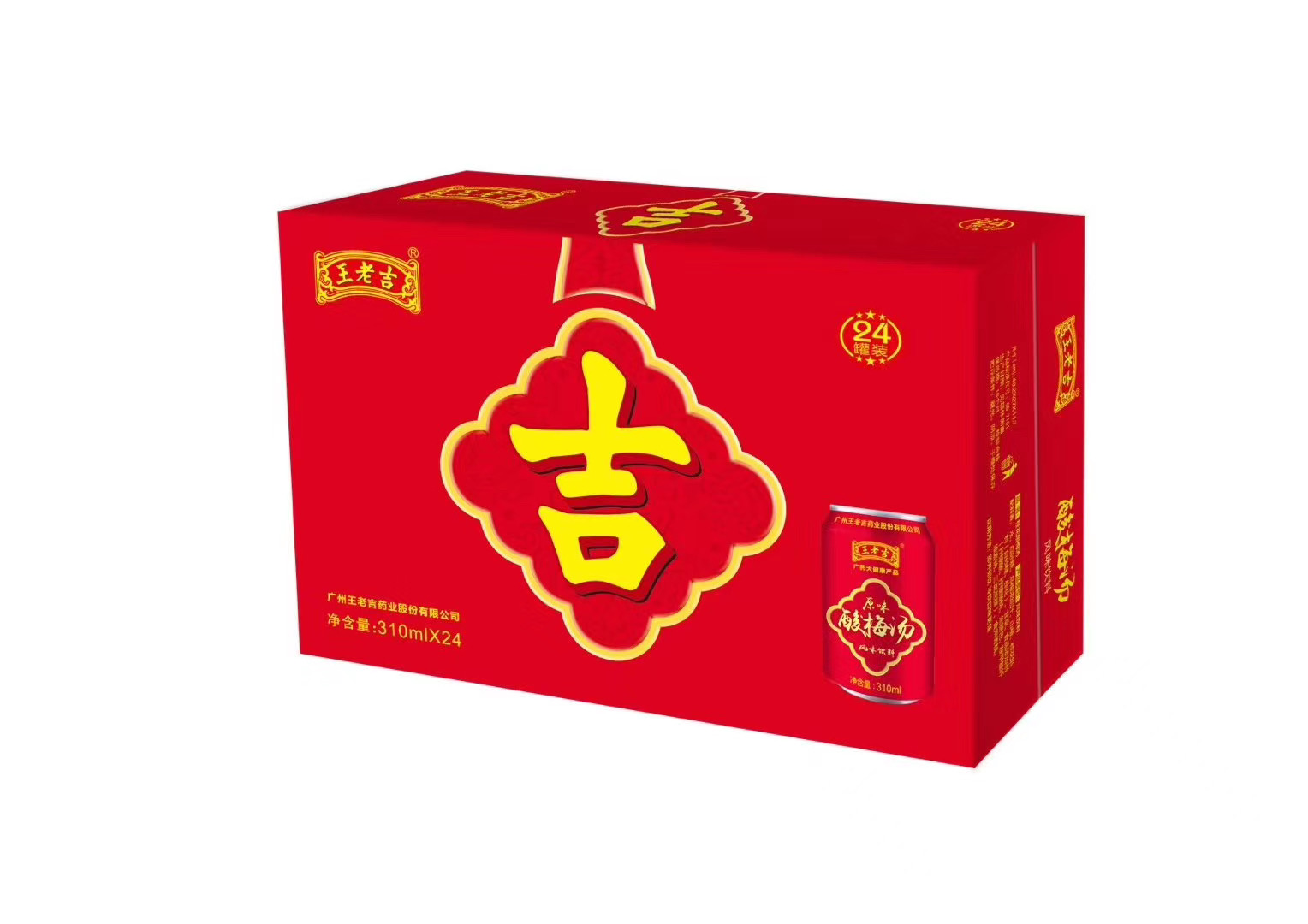 在包装上,经典的红黄色调搭配继续沿用,也符合传统饮品的调性。“中国结”元素的加入,也延续了王老吉所传递的一种“吉文化”。