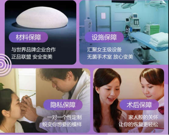 安全体系:美莱建立标准化保障管理体系,在材料品质等方面严把质量关,所使用的产品材料均经专业机构认证,力求为广大求美者提供安全、可靠的高品质塑美。
