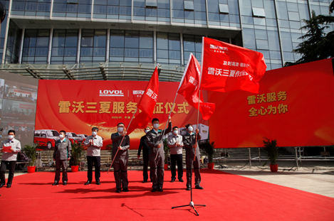 活动现场,雷沃服务工程师接过“雷沃三夏全程智能服务队”的大旗,携带着配备齐全的防疫物资,乘坐雷沃服务车与雷沃阿波斯配件流动车一道踏上南下的三夏服务之路。