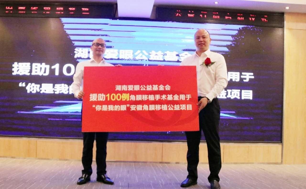 启动仪式上举行了签约仪式,安徽省红十会基金会捐款100万元,湖南爱眼公益基金会援助100例角膜移植手术基金,用于安徽贫困角膜患者救助基金。