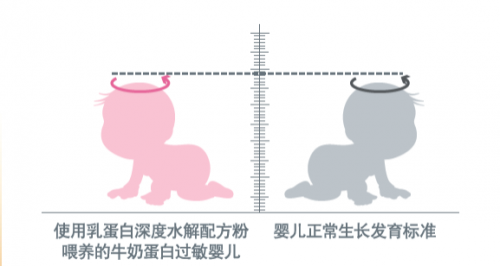 肽敏舒的低致敏性体现在其配方由80%短肽和20%游离氨基酸组成,蛋白质平均分子量极低,因此可缓解过敏症状。此外,肽敏舒中各氨基酸比例均衡,更易被人体消化和吸收,帮助患儿追赶性生长。研究显示,使用乳蛋白深度水解配方粉喂养的牛奶 蛋白过敏婴儿的身长和头围可达到婴儿正常生长发育标准。