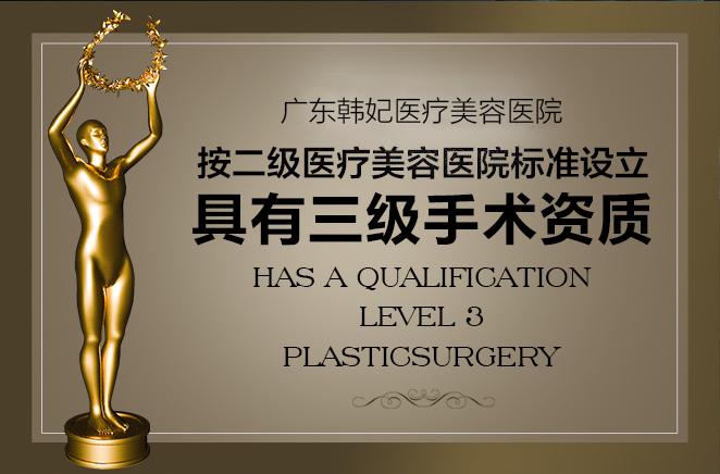 广东韩妃医疗美容医院获卫生部颁发《医疗机构执业许可证》,符合整形美容医院分类相关法规政策,并且求美者可在卫健委查询到韩妃是具备省级二级资质的专科整形医院。