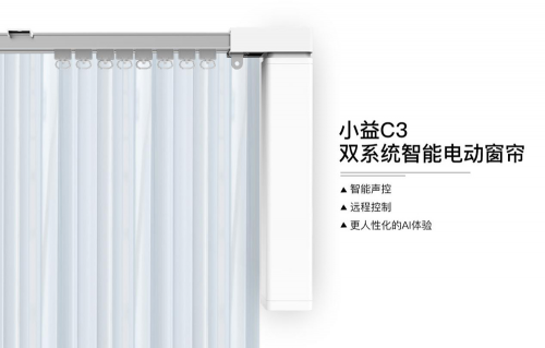 小益C3是款支持轨道自由拼接的天猫精灵/米家双系统智能电动窗帘,此款产品,支持天猫精灵、米家小爱、Siri的AI语音控制,开启智慧生活,动口不动手,只需简单的语音交互,便能随时操控窗帘,让你享受真正的智能生活。比如通过指纹打开智能门锁,然后对天猫精灵/米家小爱说打开窗帘,窗帘自动慢慢开启。