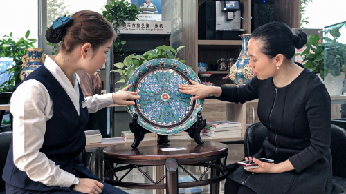 现场展出了非遗国宝景泰蓝、国宝瓷器、国宝花丝镶嵌等30多件艺术作品,并邀请珠宝、艺术行业的资深策展人,百嘉艺术馆总经理谢水莲女士,渤海银行商务支行主持人叶子一起,用体验式直播带领我们“云上逛展”,挖掘展品背后的故事,分享洞见与心得。