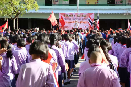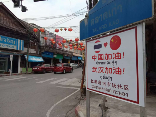 疫情初期,新冠病毒肆虐中华大地之时,泰国政府、泰国人民以及在泰华人为中国加油打气、捐款捐物,民众聚集在商场广场前为中国助力,曼谷街边配有加油词的LED屏在夜幕中格外亮眼,泰国政府也出台了许多政策帮助滞留泰国的中国游客和确诊患者,感动了千千万万的中国人民。