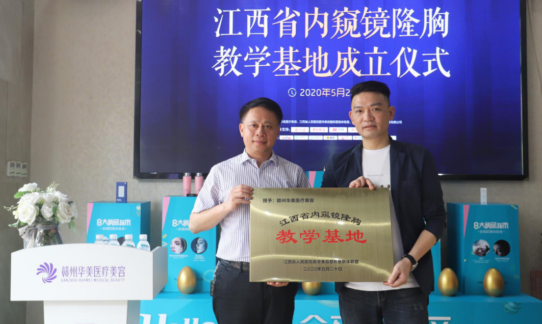 华美是目前江西唯一一家被授予“江西省内窥镜隆胸教学基地”的机构,华美承载着医美界专家、学者的希望与期待,承担着江西省隆胸学术发展的重任,随着江西省内窥镜隆胸教学基地在华美的正式成立,使得广大隆胸手术工作者有了一个学习提高和交流的良机,赣州华美将不断开展学术交流和培训,使华美成为内窥镜隆乳技术专业人才培养和输出的大本营,为更多的求美者带来福音。