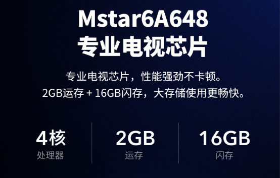 存储方面采用的是2GB+16GB的大存储,不仅满足了系统的使用需求,还可以安装不少第三方软件。目前智能电视一般都是自行安装一些直播app或者免费观看的视频app等,不仅可以省会员的费用,还可以安装一些游戏,满足全家人不同的观看和使用需求。