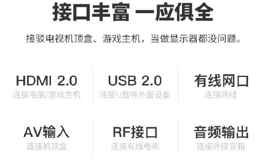 这款电视接口比较丰富,不管是连接电视机顶盒,还是游戏主机,或者是要当显示器用,都是能完美的结合的。