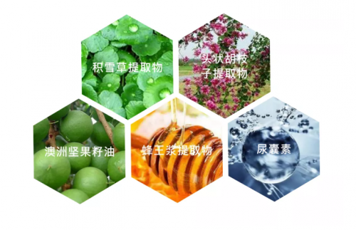 还有依克多因、积雪草提取物、头状胡枝子提取物、澳洲坚果籽油、蜂王浆提取物、尿囊素等植物精华,舒缓被“摧残”的肌肤,在防晒的同时给皮肤持续的滋养。