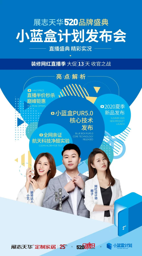 日前,展志天华5.20品牌盛典—小蓝盒计划发布会,通过直播形式隆重举行,以环保家居产品盛筵,为全国用户献上特别的“表白日”。