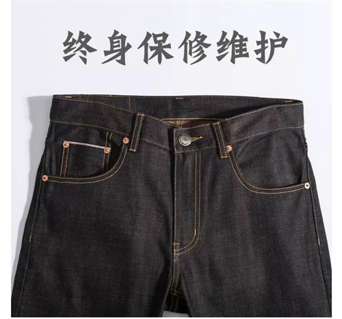 裤脚外侧有两条两色的边叫赤耳,只有古董的梭织机才能织成。