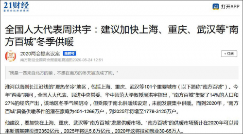 近日在两会新闻上获悉,全国人大代表、华中师范大学教授、长江教育研究院院长周洪宇将在全国两会上提交 《关于加快发展我国南方百城供暖市场的建议》,明确提出应加快发展南方百城供暖市场,以此作为应民声、保民生、稳就业、促增长的重要手段。