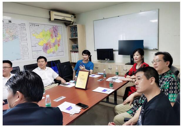 在孟令喜公司座谈交流。