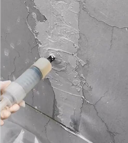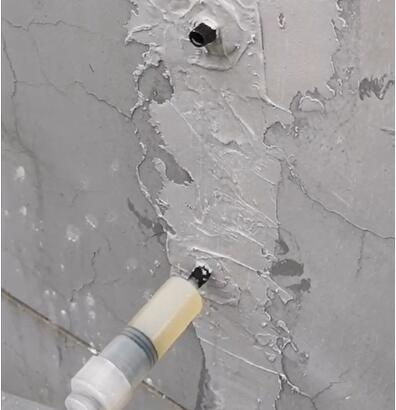 2)裂缝宽度大于0.5mm且走向蜿蜒曲折或体积较大构件混凝土深裂缝,应采用机控压力注胶,让结构胶能更好的渗入裂缝内部对其进行修复;