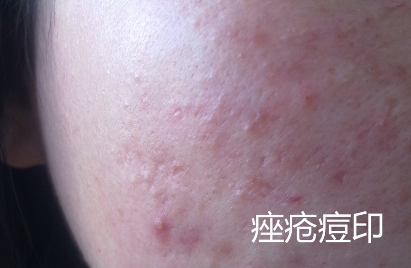 2、皮肤油腻,痘痘不断冒出,第一批好了,留下了痘坑痘印,第二批又接着冒出来。