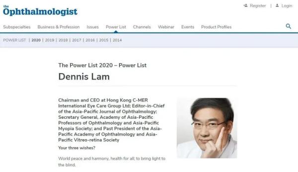 今年是林顺潮教授连续第四届(2014,2016,2018及2020)入围“世界眼科人物最具影响力100强榜单”,该榜单每两年推出一次,入选的100位眼科人物来自多个国家和地区,在世界范围内具有很高的权威性。