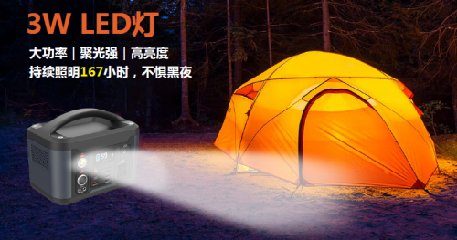 3W的LED照明灯,大功率、高亮度的照明功能,夜间户外野餐露营,随时随地为您提供电量。