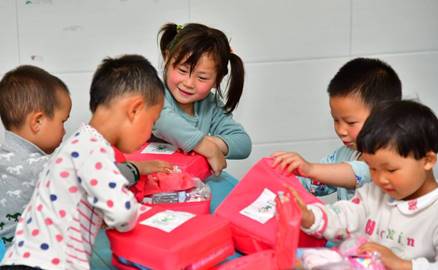 湖南省桑植县杨竹溪山村幼儿园小朋友收到了卫生防护包