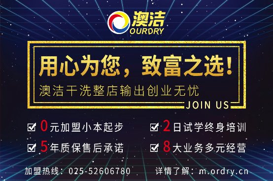 澳洁干洗是南京洗染行业知名品牌,十几年来专注干洗店加盟,帮助投资者实现干洗店的营业与盈利,目前发展了数千家加盟店。