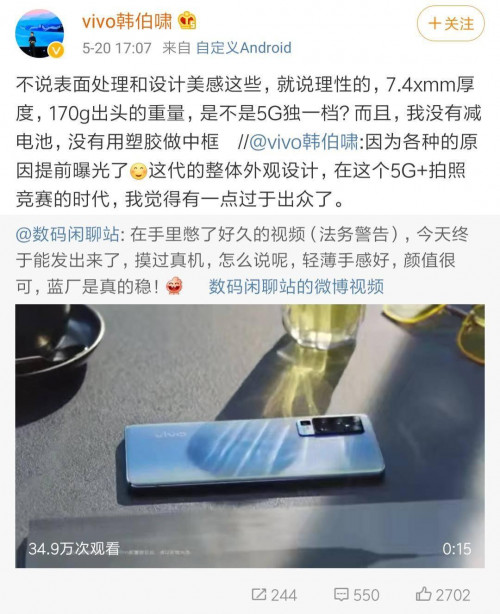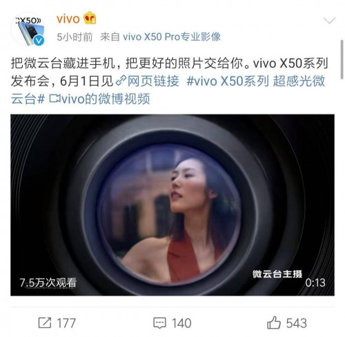 5月28日,#vivo X50#的新品发布会邀请函正式曝光,竟然是一枚搭载了微云台的主摄实物。此举既新鲜有趣,又能够深入展示微云台的复杂结构和精巧设计,vivo真可谓用心良苦。6月1日,vivo X50将正式发布。vivo X50的外观设计雅致简洁,带来全焦段智慧影像,已成为众多朋友心中完美的时尚科技单品。