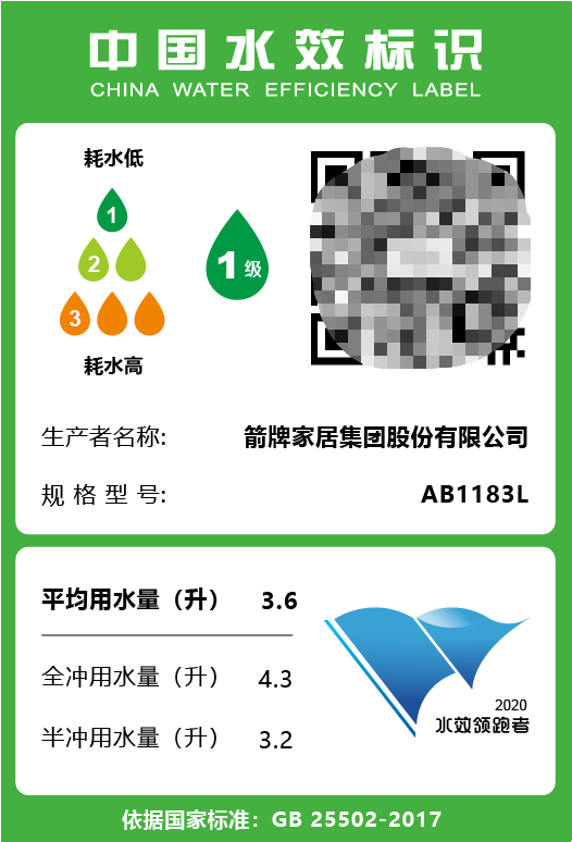 平均用水量≤3.6L的ARROW箭牌卫浴连体坐便器AB1295M/L和装配了超节水系统的AB1183M/L此次均上榜《2020年度坐便器水效领跑者产品名单》。