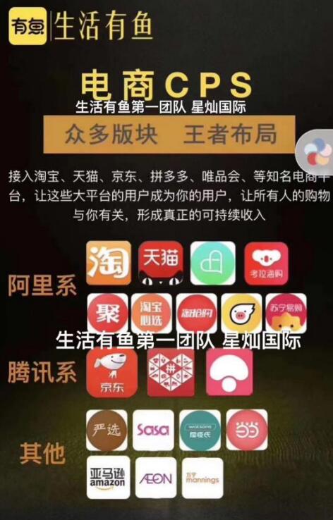 生活有鱼的供应链体系主要由四大天王平台提供,简称CPS链。淘宝、京东、