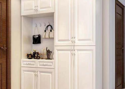 品牌匠私语告诉你,如果自家的户型左右两边无法设计,面积有限,不适合太复杂。只能摆放斗柜与门框对齐。