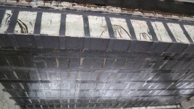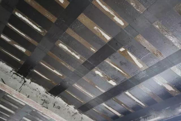 从施工流程看,碳布与粘钢也十分相似。两种方法都受结构胶影响较大,若结构胶质量不合格,加固材料会与基材剥离,产生安全隐患甚至造成事故。同时两种方法加固前均需要卸载,未进行卸载或卸载不彻底都会产生二次受力,造成加固材料受力滞后。除此之外包括表面处理、施工温度等都有高度的重合。