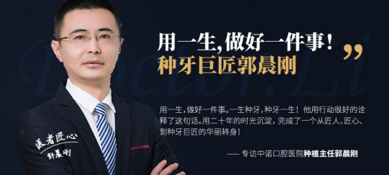 手记:用一生,做好一件事。种牙一生,一生种牙!在二十年的岁月沉淀中成为一名种牙巨匠。他就是中诺种牙专家郭晨刚。及早发现天赋是人生的一大幸运,有的人十几岁就发现了自己天赋,并把它发展为终生事业、有的人一生都在发现自己的天赋,郭晨刚属于第一种。很小就发现了自己牙医的梦以及对种植牙的天赋,二十年如一日,坚持不懈,他沉浸在种牙的世界里,慢慢打磨自己的医术,淬炼心性,用“精细化种植牙”回报时光与岁月,在时光中沉淀和打磨成为一名巨匠。“一个人首先要淬炼心性,唤醒体内的一流精神,才能达到一流的医术。”郭晨刚如是说。这正是历经二十年的种植医生的宝贵精神内核,也是现代人在快节奏生活以及世俗名利裹挟之下所缺乏的人生判断与价值。基于此郭晨刚主任先后于第四军医大学和华西医科大学口腔医学院研修种植牙,接受全面系统的学习。用一生,做好一件事。一生种牙,种牙一生!他用行动很好的诠释了这句话。用二十年的时光沉淀,完成了一个从匠人、匠心、到种牙巨匠的华丽转身!受邀前往韩国及俄罗斯等国家进行教学示范,连续三年获得韩国SIDEX案例大赛金奖,案例入选《全球种植牙名家案例选集》。