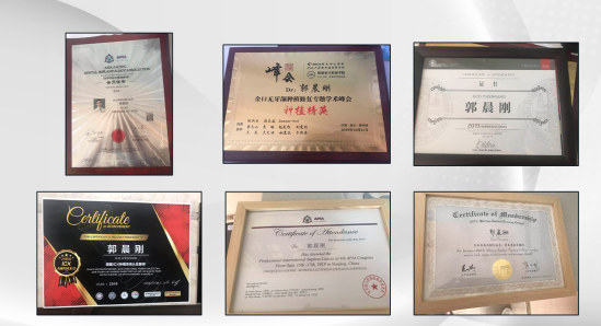 专业的人总让人尊敬,优秀的人总让人称颂!随着郭晨刚主任在种植界的影响越来越大,在学术界受到了更多的重视,逐渐成为更多学术协会的成员,如:中华口腔医学会会员、国际口腔种植研讨会成员、中国国际性口腔学术研讨会成员、北京无牙颌种植中心成员、BITC种植成员、北京立得用口腔医学研究院委员。受邀前往韩国及俄罗斯等国家进行教学示范,连续三年获得韩国SIDEX案例大赛金奖,案例入选《全球种植牙名家案例选集》。多次受邀出席国际性口腔研讨会。