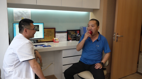 勇者无畏!技术精湛才经得起效果的检验。很多患者对种植牙技术不太懂,虽然缺牙给自己带来了很多困扰,但是对种植牙还有一点担心,担心疼痛、担心出血、担心效果,不知道种植牙过程是怎么样的。为了让患者和居民更加了解种植牙,郭晨刚主任勇敢的走到镜头面前将手术的过程展示出来,术前麻醉操作轻微,术中几乎没有出血、微创种植牙伤口非常小、手术耗时很短,让广大患者一下子就更加放松和接受了。