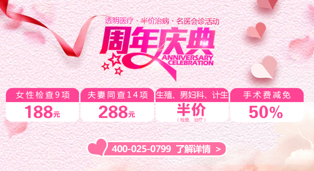 为感谢二十年来所有市民对我院的支持和厚爱,院庆盛典活动期间,不孕不育、计生、私密整形、男妇科各项检查、治疗、手术费均减免50%(半价);