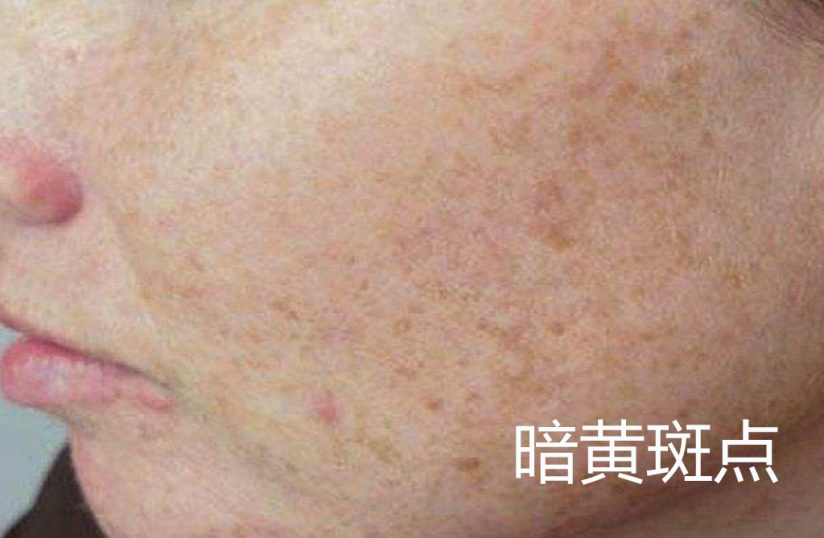 1、皮肤色沉,暗黄斑点,随着年龄增长,藏于皮肤深层的斑点会越来越多的浮显出来。