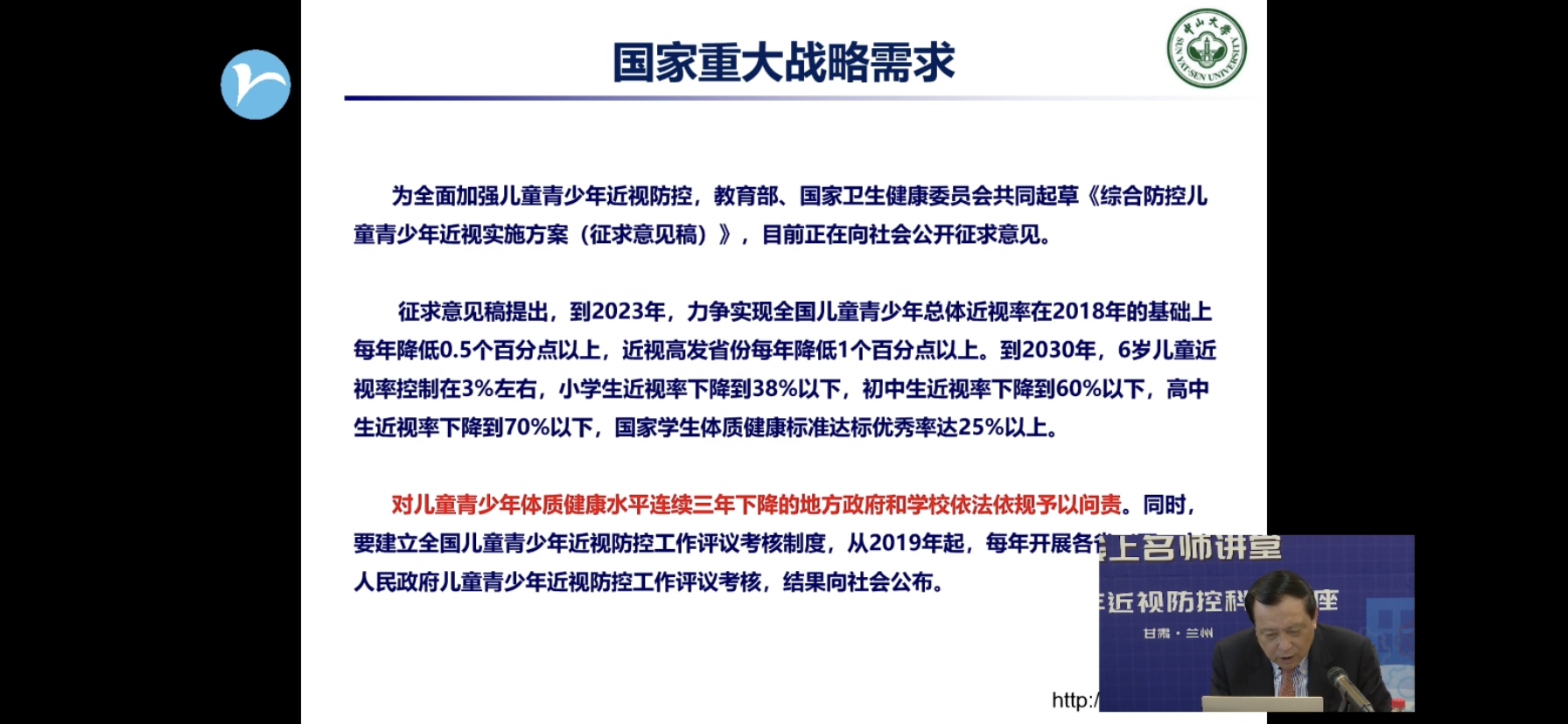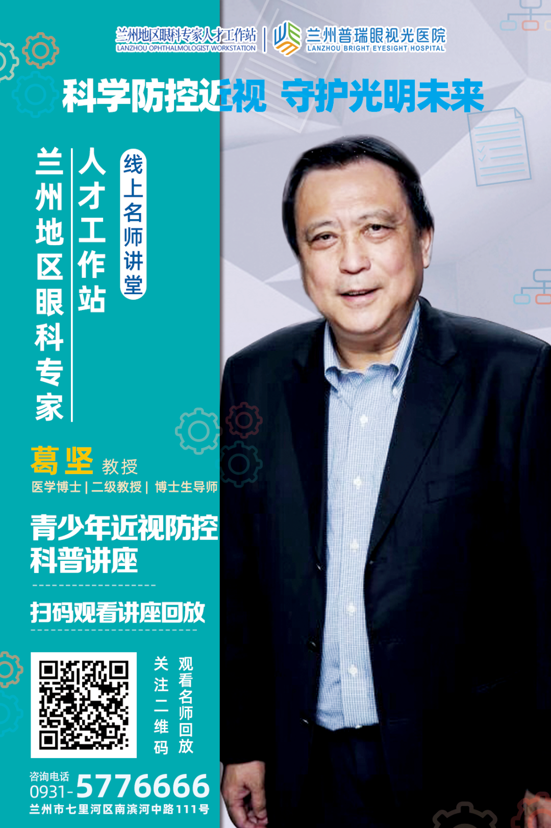 甘肃省各类学校已于4月份陆续开学,长时间网课后青少年的视力问题已经引起了全社会的关注。在爱眼日来临之际,为贯彻落实党和政府对儿童青少年近视防控工作的指示和持续推进综合防控近视工作,5月30日下午,首届中山大学名医、眼科学国家重点实验室终身名誉主任、国家973项目首席科学家、中华医学会眼科学分会名誉主任委员、兰州地区眼科专家人才工作站专家葛坚教授在兰州普瑞眼视光医院,通过网络直播的形式,为全市中小学生进行了青少年近视防控科普讲座。