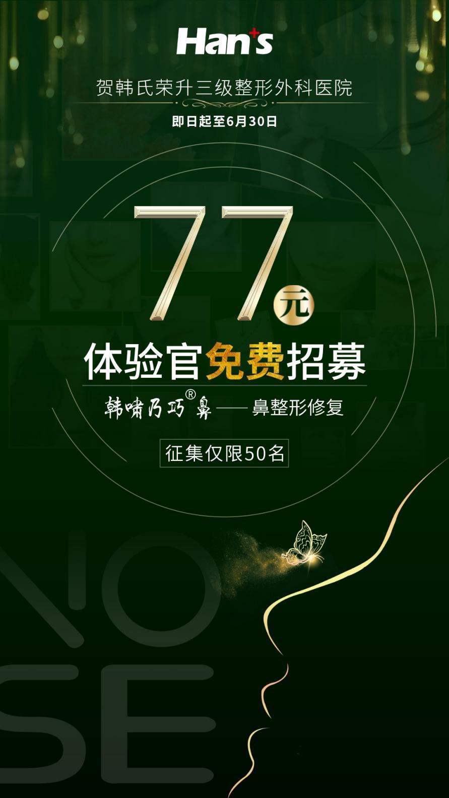 近年来,鼻修复失败率逐年上升,除了审美问题、非法使用劣质鼻假体及医生技术不过关等原因,还有很多整形机构还在使用错误的、不适合求美者个人的隆鼻方法,这是整形界的“悲哀”。为了解决市场上正在迎来的鼻修复高峰期,让更多的求美者不再因为个人审美或医生技术而走弯路,同时为了庆贺济南韩氏整形外科医院荣升为三级整形医院,特举办“韩啸乃巧鼻之鼻部修复:77元鼻整形修复体验官招募”活动,并由韩啸院长及弟子团亲诊、手术。