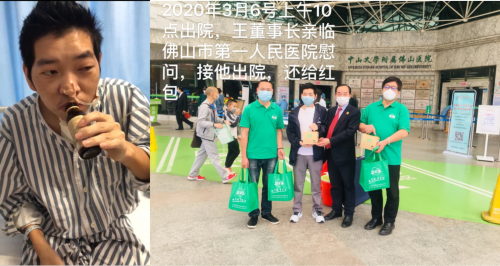 可能是我的情况比较特殊,我自己包括我的主治医生都没有想到,服用的畅乐健活性益生菌饮品,就能恢复自身免疫力,让抗生素都不能百分百有效的霉菌感染从身体体内消失。出院时,科顺董事长王贵华先生带领团队亲临佛山市第一人民医院接我出院,送我畅乐健饮品,鼓励我积极工作,用辛勤的工作感谢那些帮助过我的人。