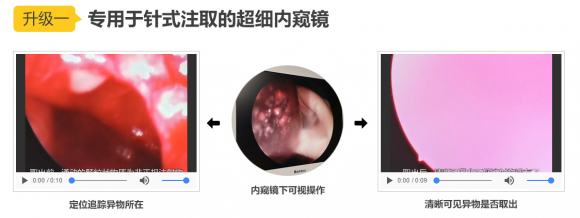 升级一:定制超细内窥镜主要专用于面部注取,区别于常用内容窥镜,探头直径仅有针口一半大小(<1mm),针孔型创口。