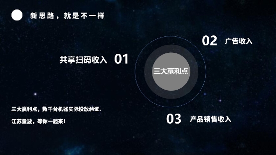 坚持实体为本、模式创新,往往有更大的发展机会。关键在于能否找到痛点,形成巨大成长性的商业机会。帝源共享空气净化器,首先是基于两届世博会指定产品、性能优异的帝源产品,通过免费投放餐厅包间,解决二手烟问题,扫码获得收益。机器上自带显示屏,可以获得广告收益。而加盟者,还可自然成为帝源全系产品的代理商,获得销售利润。一款产品,拥有三个获利方式,非常吸引眼球。