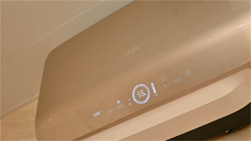 史密斯薄型速热电热水器采用了曲面全屏触控,在未通电的情况下,隐蔽性很高,浑然一体。而通电点亮之后,可以直接在上面查看或者调整水温水量,兼顾了实用性和科技感。