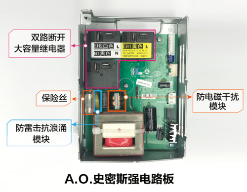 并且,这块强电路板上还配备了如防雷防浪涌、防电磁干扰、保险丝等多种保护模块,保护强电系统在恶劣用电环境下的稳定可靠。这都是普通的强电路板所不具备的。