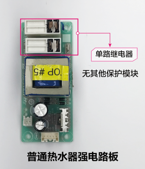 安全性方面,普通电热水器一般只用单路继电器,异常情况下,只断火线,零线仍处接电状态,安全可靠性低。通过对比,可以看到史密斯薄型速热电热水器使用了双路继电器,异常情况下,可以同时切断火线和零线,使得电路可以完全可靠地被切断,保证安全。