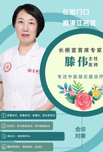 滕伟主任医师,国内著名结石症专家,长根堂首席专家,华东中医药协会学术专委会委员,中华医师中医药分会会员,中华全国医师委员会会员,,拥有多年中医临床经验,著名中医肝胆肾结石症专家,擅长:胆囊结石、胆囊息肉、泌尿系统方面结石、在中医诊疗方面拥有着独到的见解,多年采用中医帮助数以千计的结石病患者重获健康,凭借深厚的中医功底,刻苦的钻研和中医的禀赋,全面掌握了结石疗法的要旨和精髓,得到了大家的一直赞许。