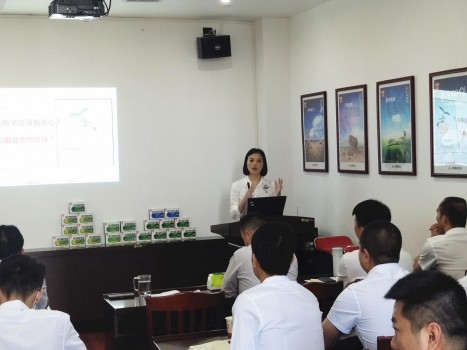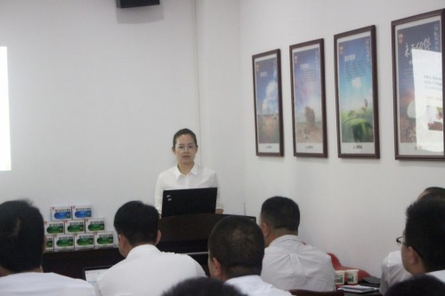 华北大区经理蒙艳妮在会上分享公司《产品PPT推介》,以加深营销战士对公司及产品的理解,方便为各合作伙伴服务。