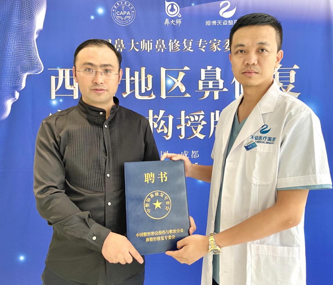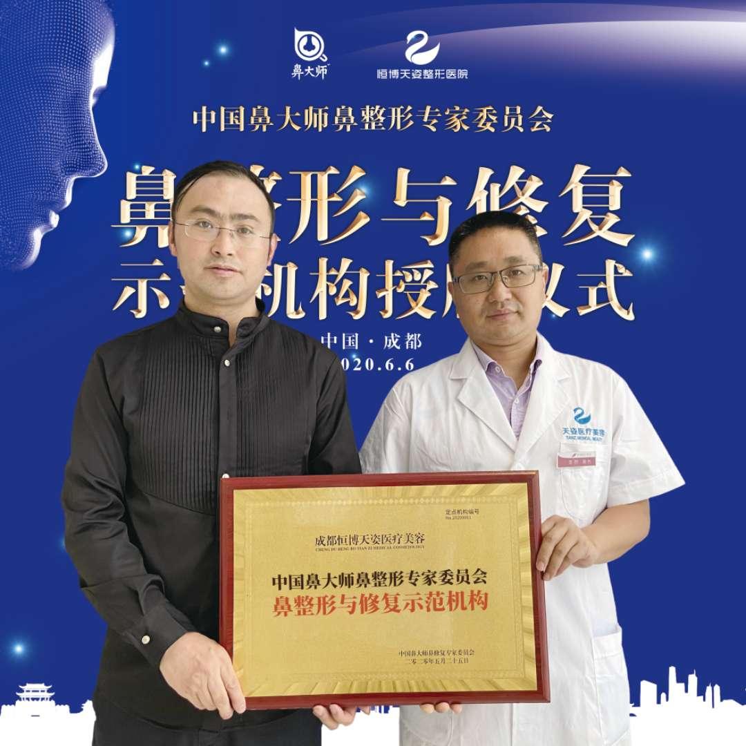 2020年6月6日上午,成都恒博天姿医疗美容肖凌院长正式被任命为《中国鼻大师鼻整形专家委员会》四川地区核心专家成员。《中国鼻大师鼻整形专家委员会》秘书长龙承万先生、成都恒博天姿医疗美容李烈院长以及成都恒博天姿医疗美容鼻整形技术院长肖凌院长出席了授牌仪式。