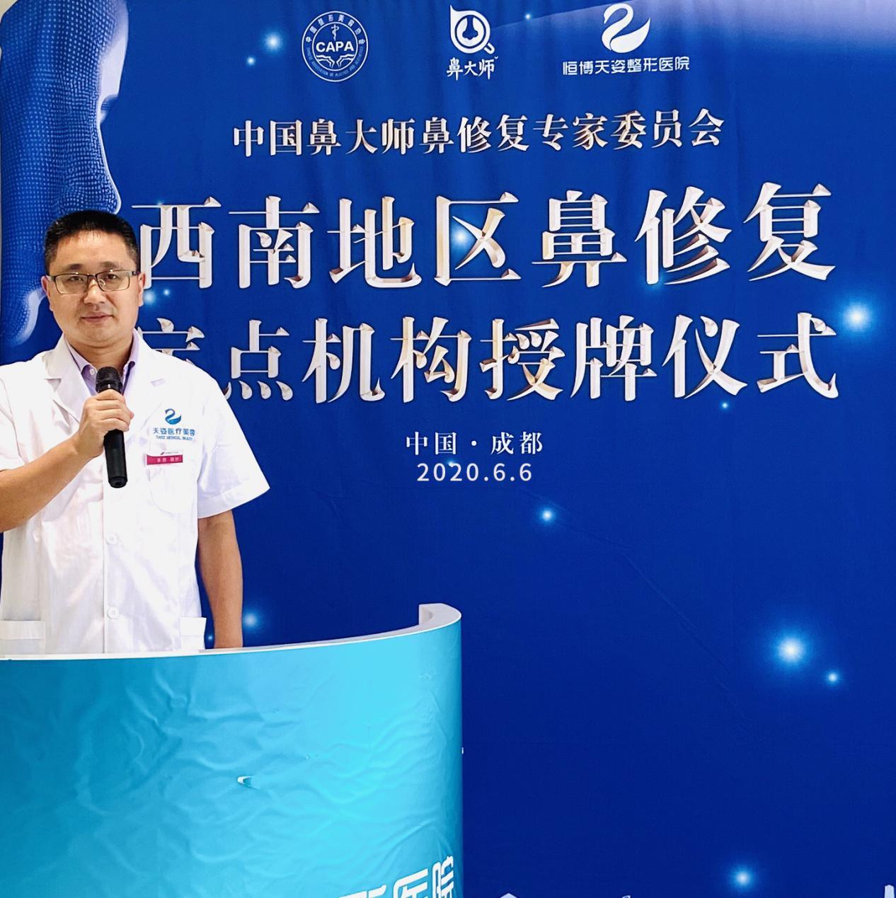 《中国鼻大师鼻整形专家委员会》秘书长龙承万先生在授牌仪式上发表了精彩演讲。他说:创建一个专业鼻整形的医生专组织,甄选一批优秀的鼻整形与修复示范服务机构和医生,具有极大的社会意义。我们之所以任聘成都恒博天姿医疗美容肖玲院长为《中国鼻大师鼻整形专家委员会》四川地区核心专家成员,首先他具备雄厚的技术实力和丰富的临床经验,最重要的是他拥有“严谨医疗实现美丽”的初心,我们希望通过他的精湛技术,让更多的人受益,让更多人变美,将中国鼻整形技术引领到国际高度