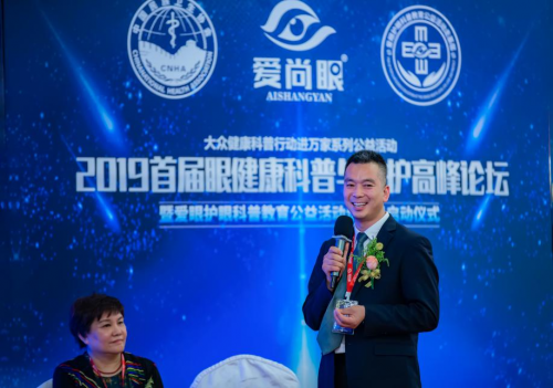 从医药行业转向近视这个领域,源于高浩然对青少年视力现状的忧虑。一旦戴上了眼镜,便是伴随其终生,而且视力状况还会越来越严重,这是为什么?深入了解后,高浩然发现,人们对眼睛的健康意识非常薄弱,很多人甚至分不清什么叫眼病?什么叫视光?什么叫视力?因此他提出,科普是养护之基。我们首先要对眼睛的相关知识有正确的认知,通过对眼健康知识进行科普,让大众早日意识到眼健康视力养护的重要性。国之根本,时不我待。爱尚眼作为“眼健康科普的先行官”,在健康科普生态环境中努力发挥着“领航者”、“排头兵”的作用,为贯彻落实总书记重要指示,在中国民族卫生协会批复的大众健康科普行动进万家系列活动的基础上,爱尚眼联合中国民族卫生协会大众健康科普分会共同举办了“2019首届眼健康科普与养护高峰论坛”、“第二届眼健康科普与养护高峰论坛”等,同时高浩然就带领自己的团队联合相关机构共同发起了“爱眼护眼科普教育公益活动走基层”等系列大型公益活动,进而推动眼健康近视防控相关工作。免费为多地儿童青少年做眼健康科学知识普及,同时对视力出现问题的青少年儿童做义诊。