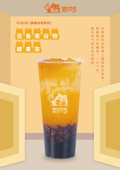 不仅是情怀的力量,夺人味蕾的味道也是它的魅力所在,尤其是它的招牌——谷物茶。谷物茶是创意与美味的碰撞,它选用的都是顶级五谷杂粮,百分百的真材实料,让人食用的放心且健康,给人十足的果腹感和满足感,芋头烤奶、红玉茗茶的味道也更是一绝。茶叮当经典的形象以及动作,亲切且具有时尚感,这可能就是茶叮当奶茶的魅力,在满足受众味蕾同时、有保证了健康,兼顾时尚的同时、又温存情怀,让它在成为一种时尚与社交的同时也成就了一段记忆。
